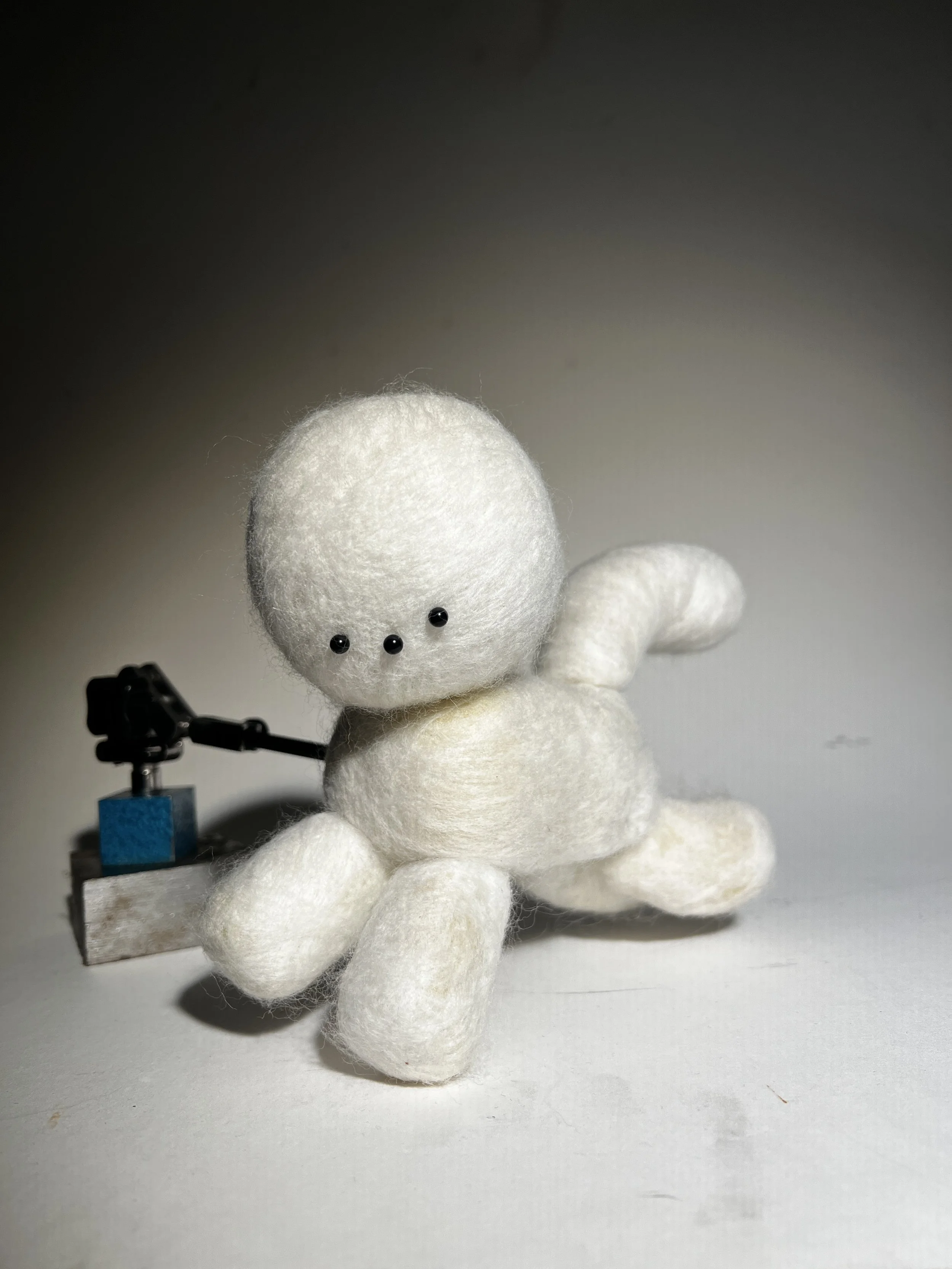 Wrapped with recycled foam, which I then shaped and needle felted wool onto